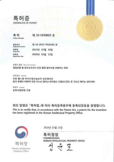 Standard:Patent Zahl:Ko10-1868858 Heft Datum:2013-07-19 Ausgestellt von:Korean Intellectual Property Office. |